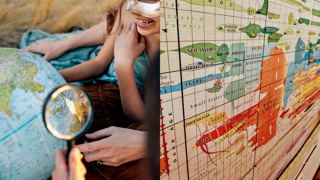 Kids understand the world so much better when they can see it, spin it, put their finger on a place. A globe turns geography into play; a giant timeline history map anchors history in physical space. Suddenly history stops being abstract. It becomes movement, land, and lived human story.